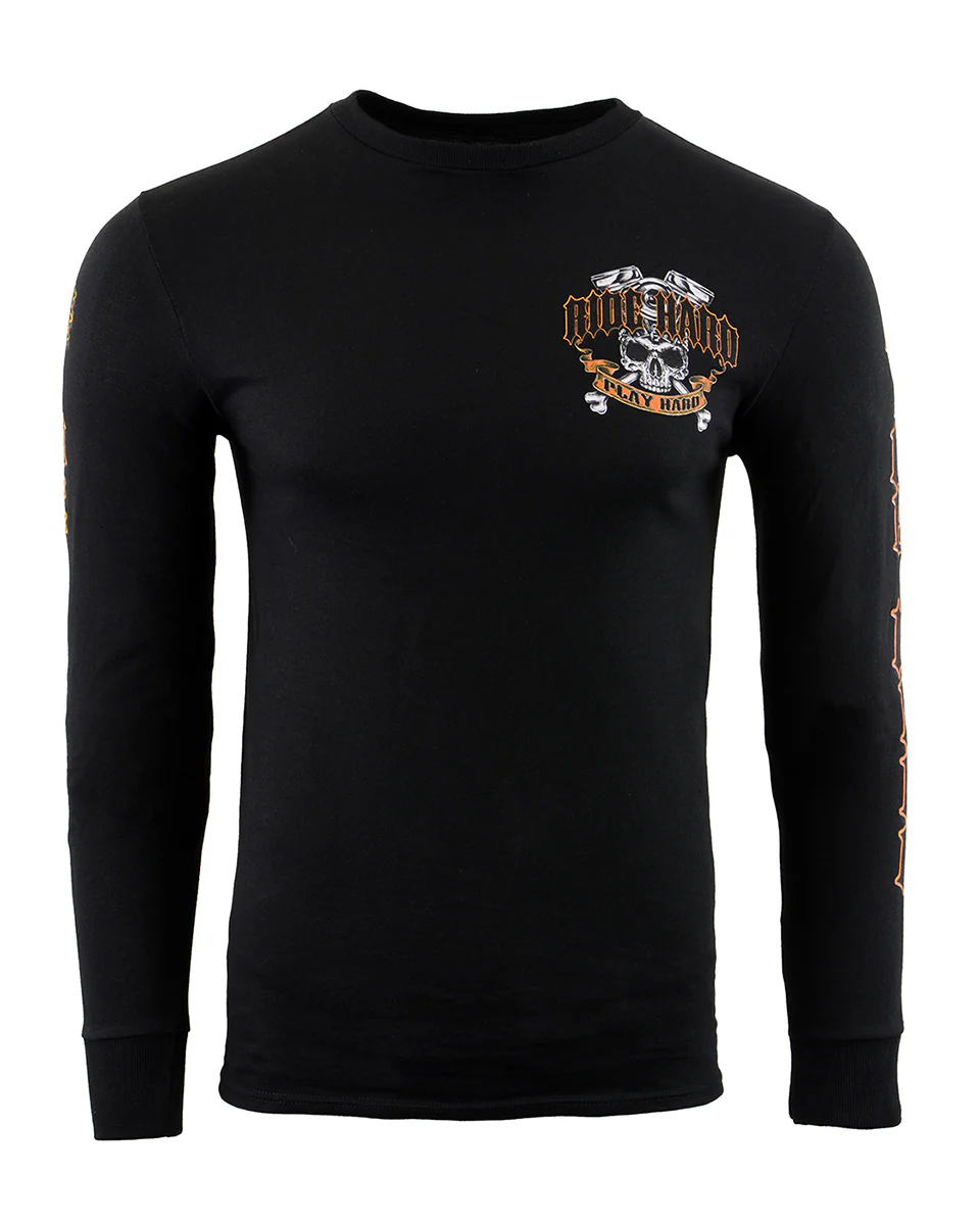 Biker Clothing Co. BCC117003 Men's Black 'Ride Hard, Play Hard ' Long Sleeve T-Shirt