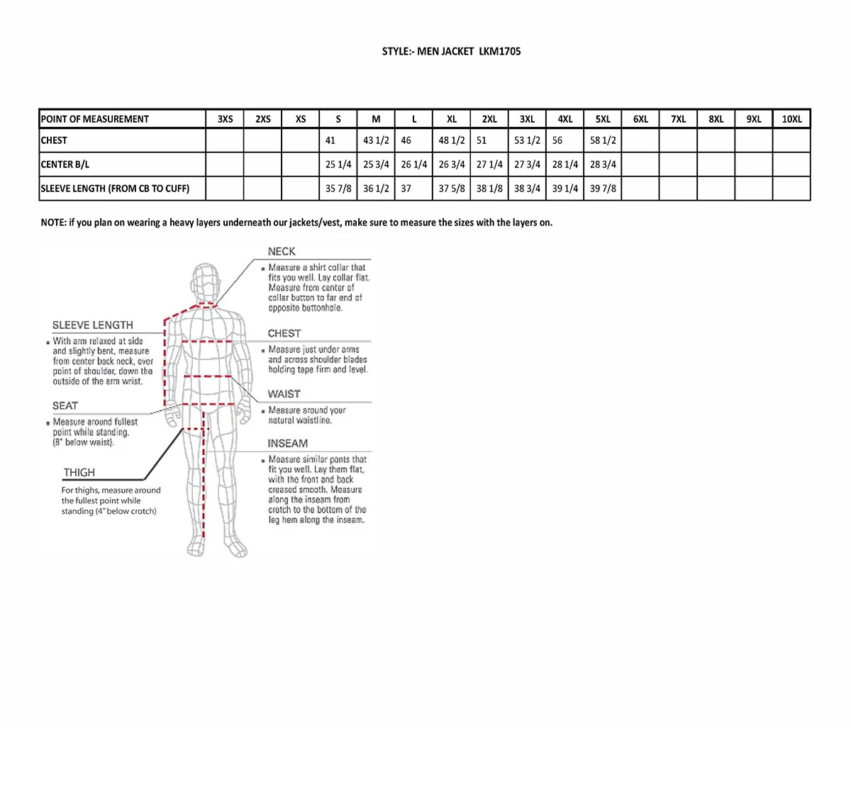 - Full Sleeve Zip Out Thermal Liner