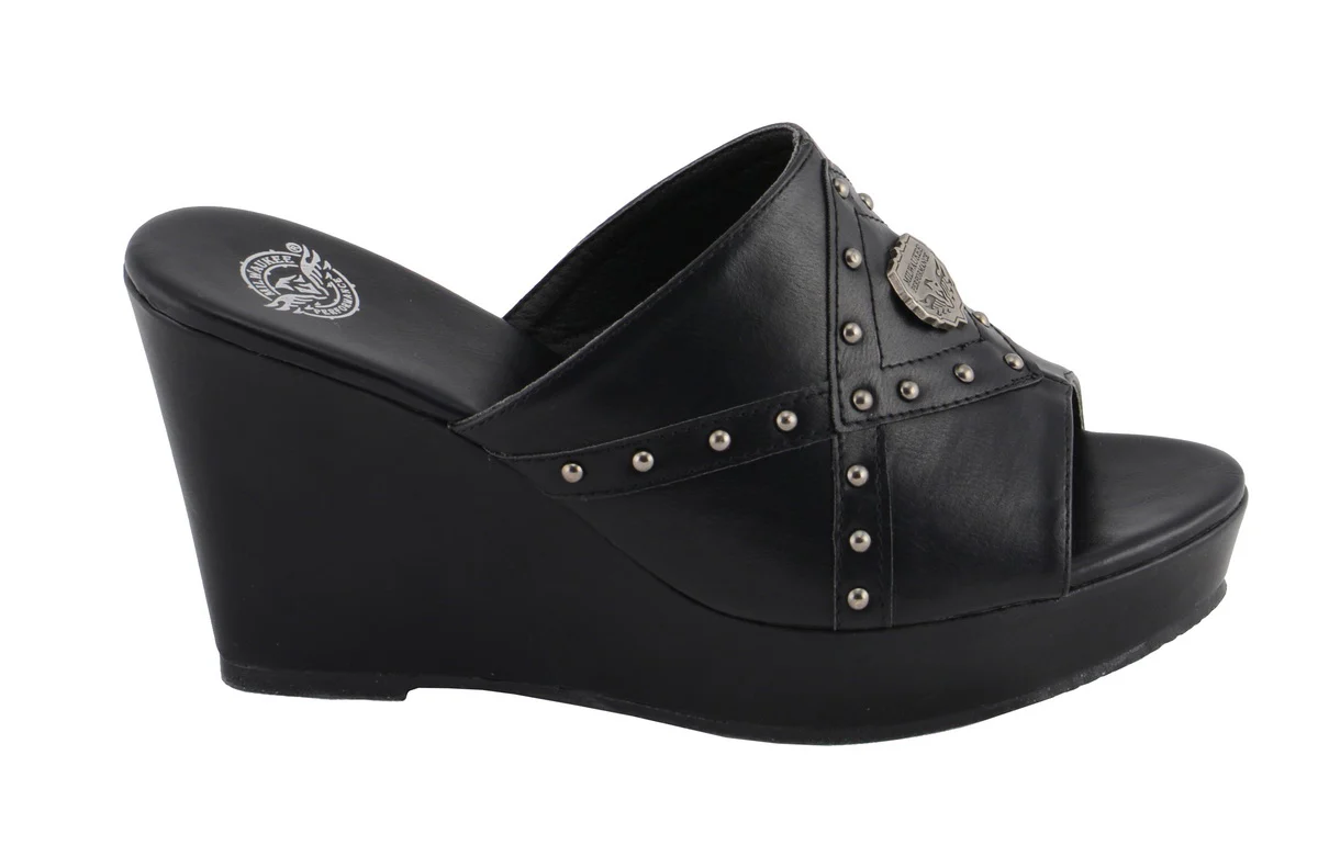 Milwaukee Leather MBL9407 Women's Black Open Toe Fashion Casual Wedge Sandals with Studs